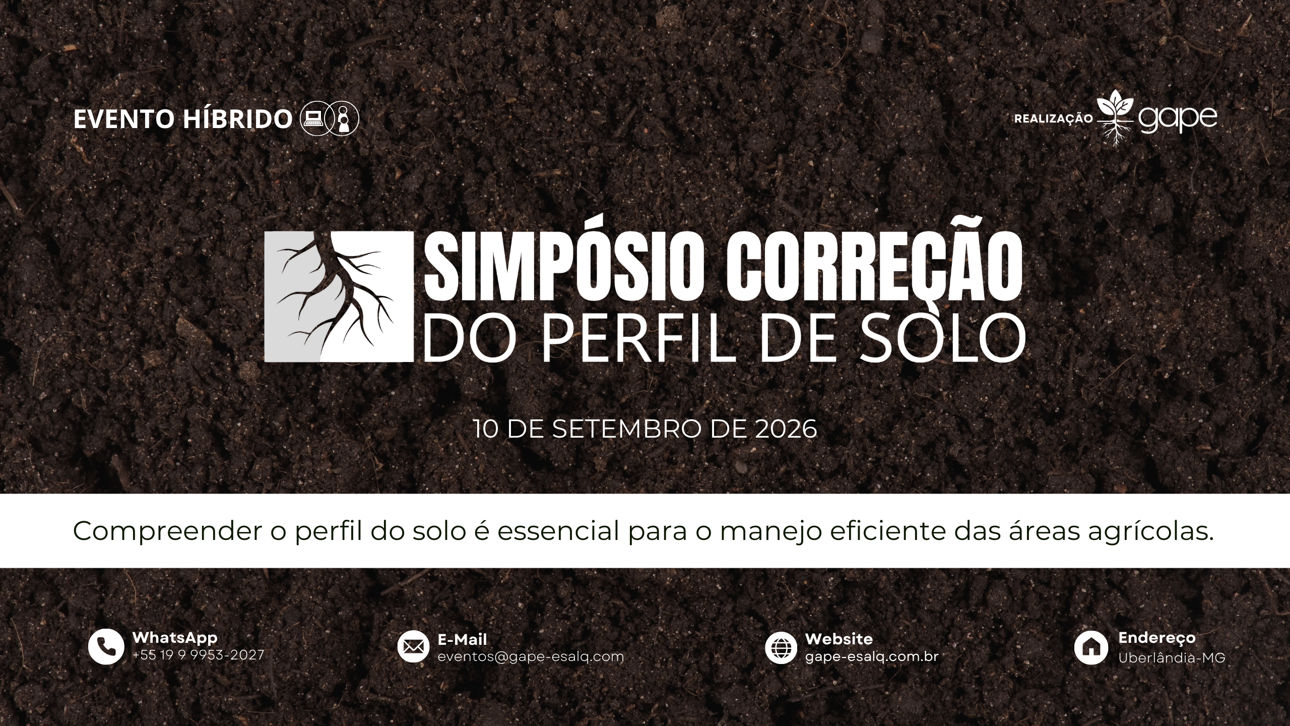 Com esse foco, o GAPE (Grupo de Apoio à Pesquisa e Extensão) promove o Simpósio Perfil de Solo, um evento técnico-científico dedicado à atualização sobre diagnóstico, manejo e interpretação do perfil do solo em diferentes sistemas produtivos.